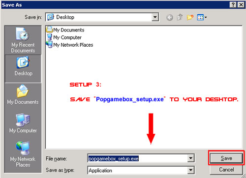 сначала запустите 'PopGameBox' на вашем рабочем столе